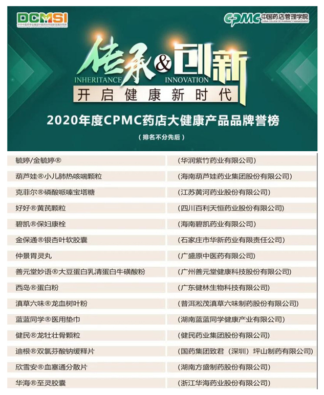 10月30日,2020年度药店管理学院年会在福建厦门召开,2020年度药店管理学院药店大健康产品品牌榜单盛大发布,尊龙凯时牌小儿肺热咳喘颗粒(4g)荣登誉榜。